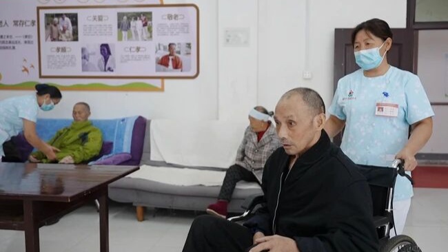 护工正在照料老人(镇远县融媒体中心供图)