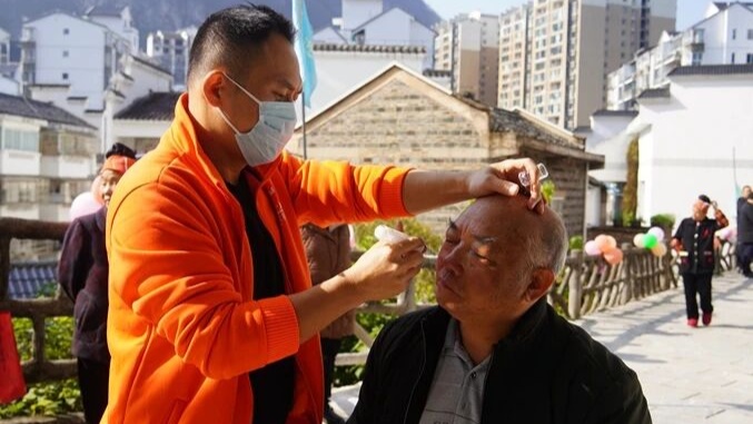 护工正在为老人理发(镇远县融媒体中心供图)