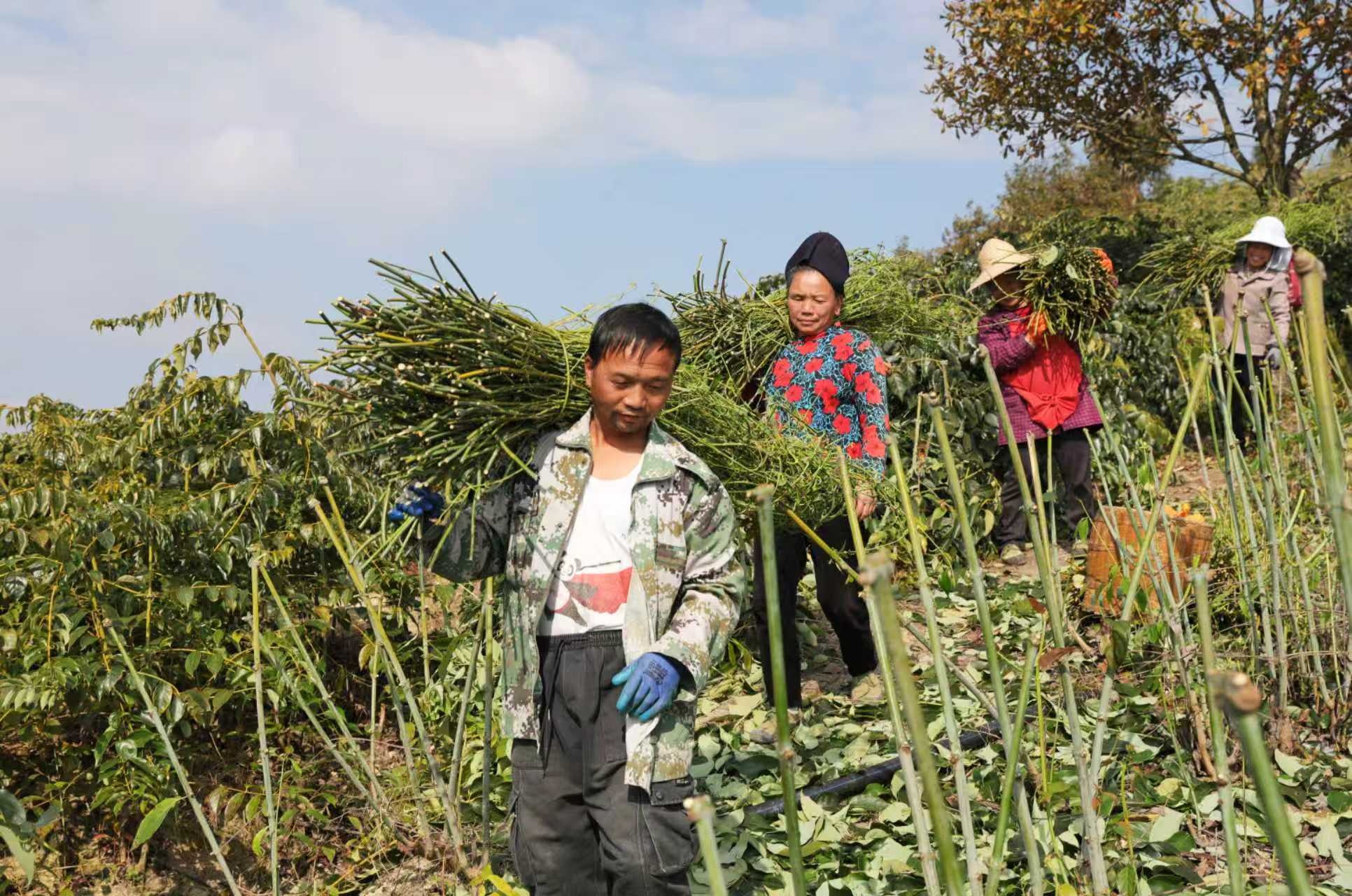 村民们搬运钩藤枝(剑河县融媒体中心供图)