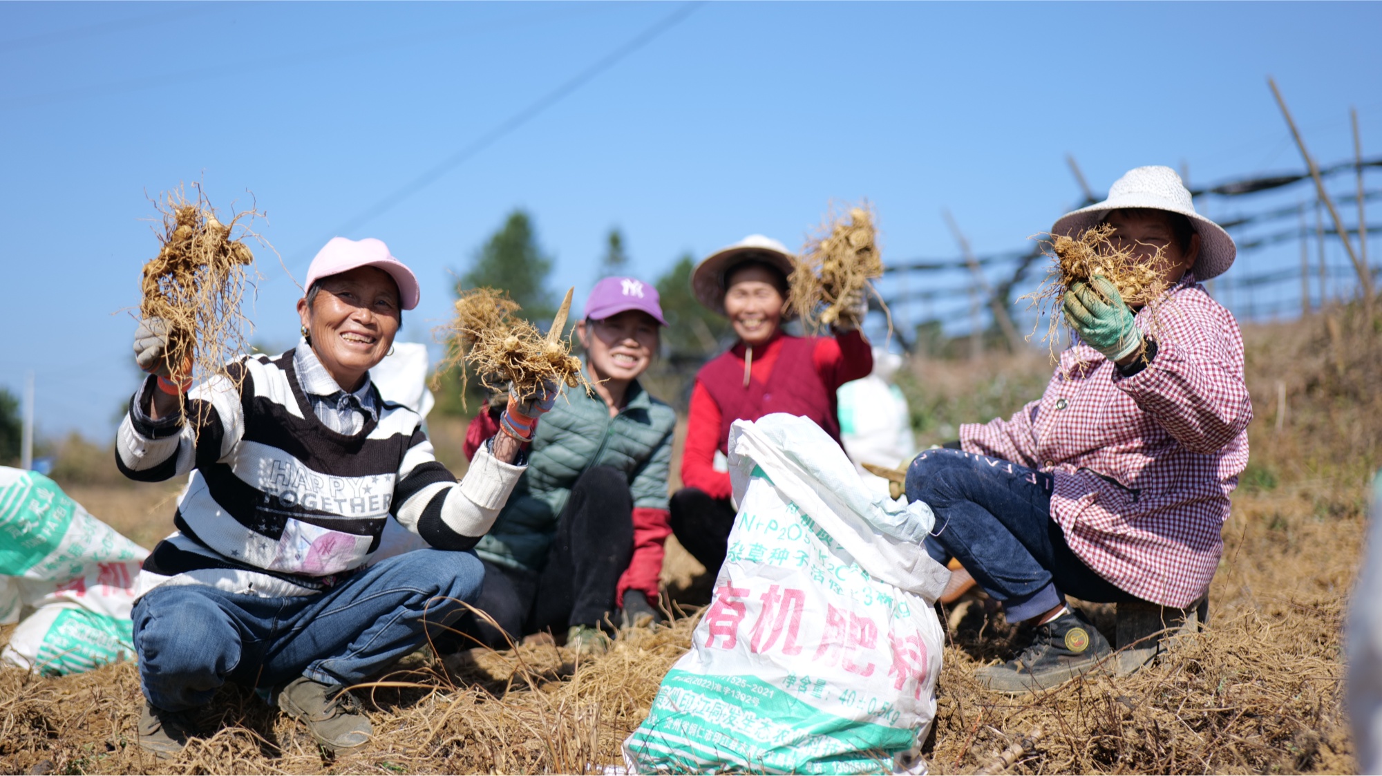 挖好装袋的黄精(邹磊 摄)