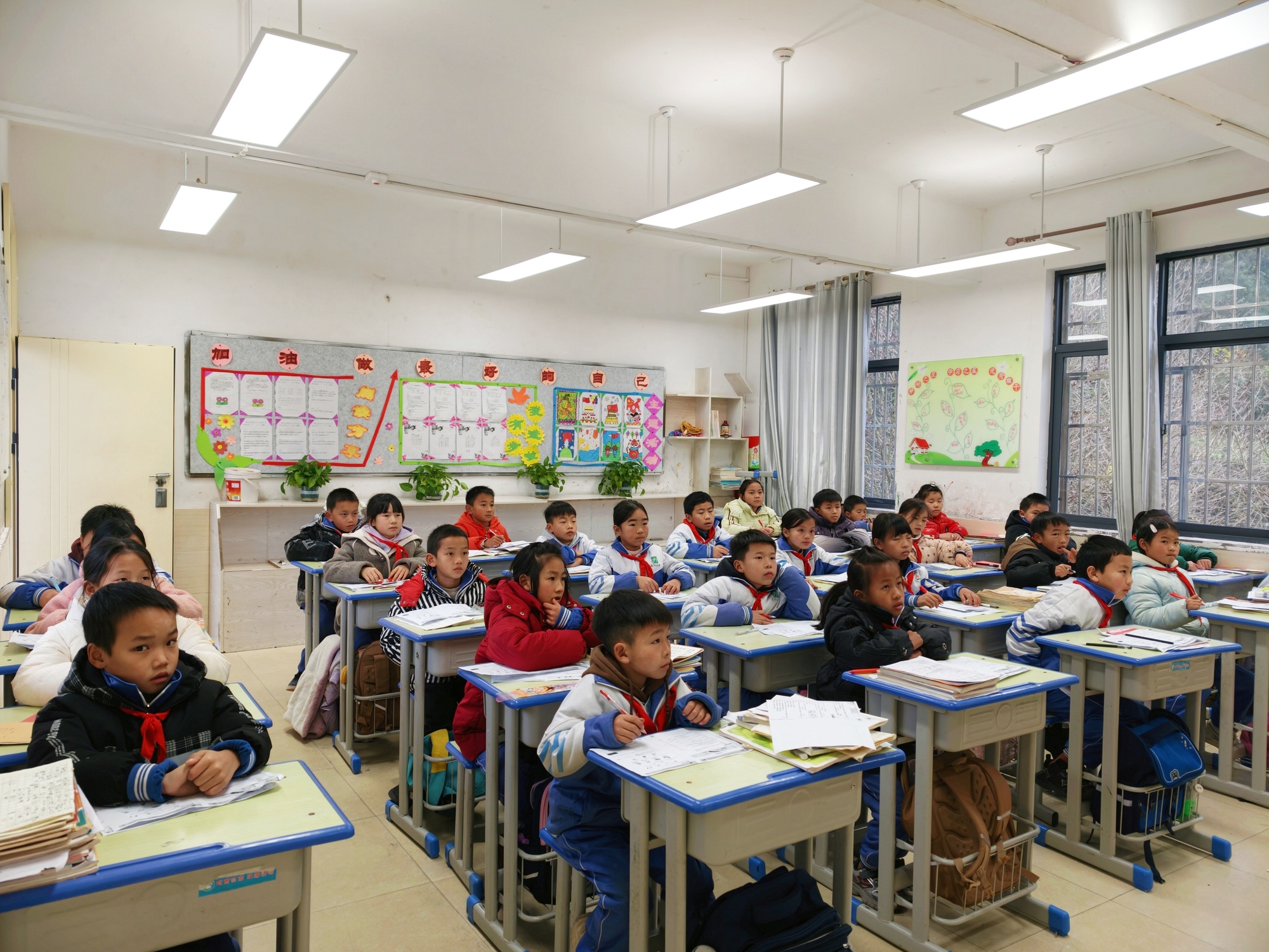 景阳小学教室安置护眼灯(麻江县融媒体中心供图)