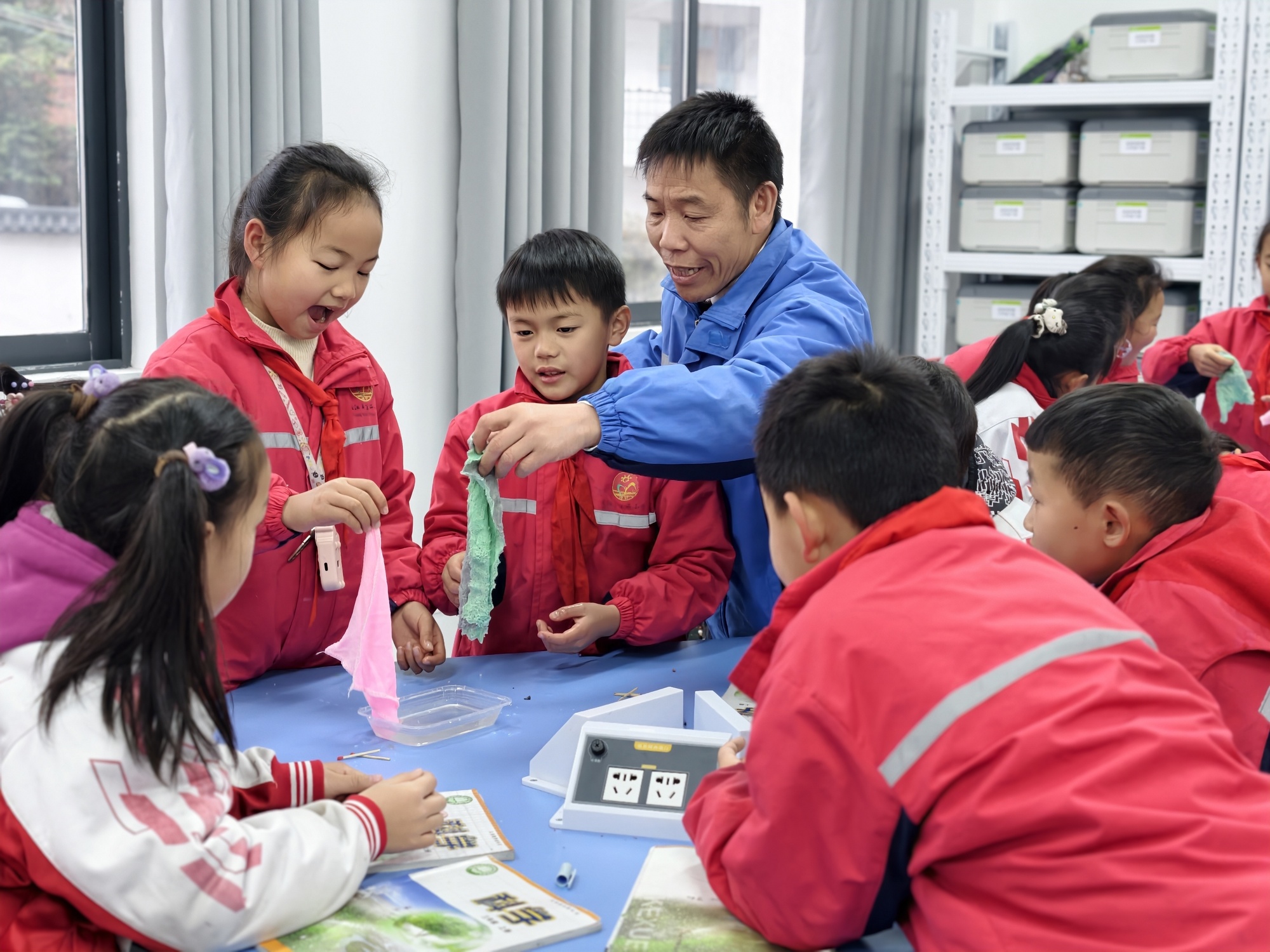 硬件升级的背后,是育人方式的深刻变革。在该县第二小学,录播室、实验室等设施一应俱全。科学实验室里,孩子们正围在实验台前,专注观察“风的形成”过程、对比不同材质的吸水性,动手操作让抽象的科学知识变得直观可感。
