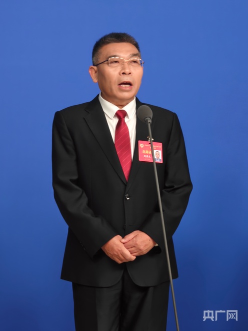 在“委员通道”上,刘学文答央广网记者问(央广网记者 任振国 摄)