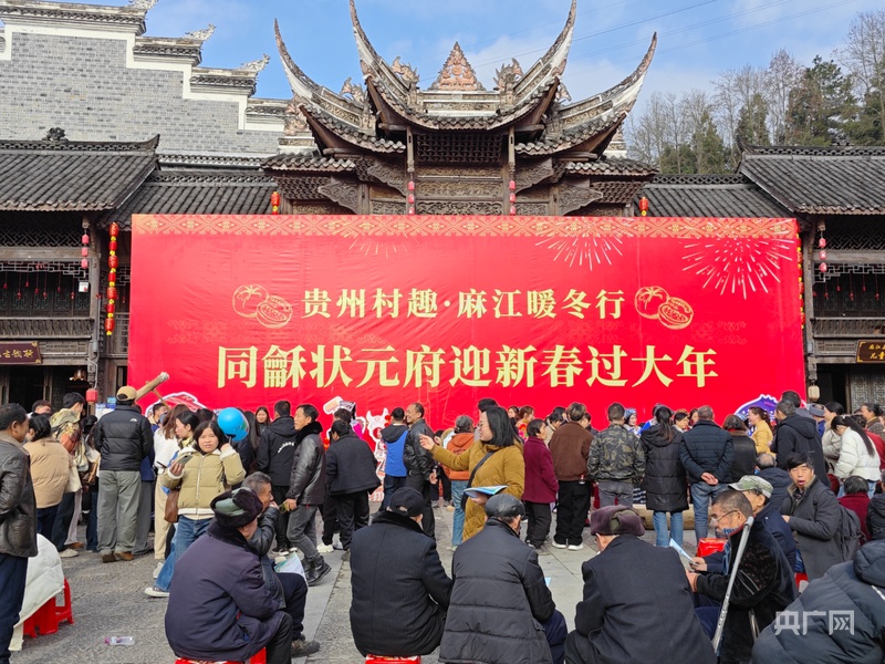 央广网黔东南2月2日消息(记者任振国 实习记者黄菲)日前,贵州省黔东南州麻江县同龢状元府景区迎来一场充满年味与文韵的文旅盛会。围绕“享状元宴 玩村趣 品年味”这一主题,该景区将状元宴、非遗体验、村趣竞技与文化打卡深度融合,推出了一系列兼具状元文脉底蕴与新春烟火气的活动。
