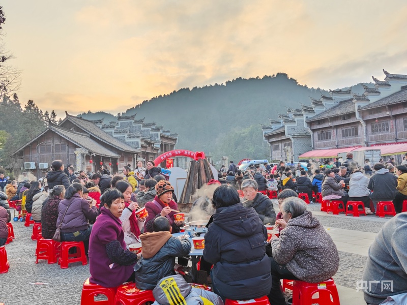 正午时分,同龢状元府景区战舞广场上已是热闹非凡。当地村民忙着抓年猪、备菜切菜,为下午的刨猪宴张罗准备,浓浓的生活气息与节庆氛围扑面而来。