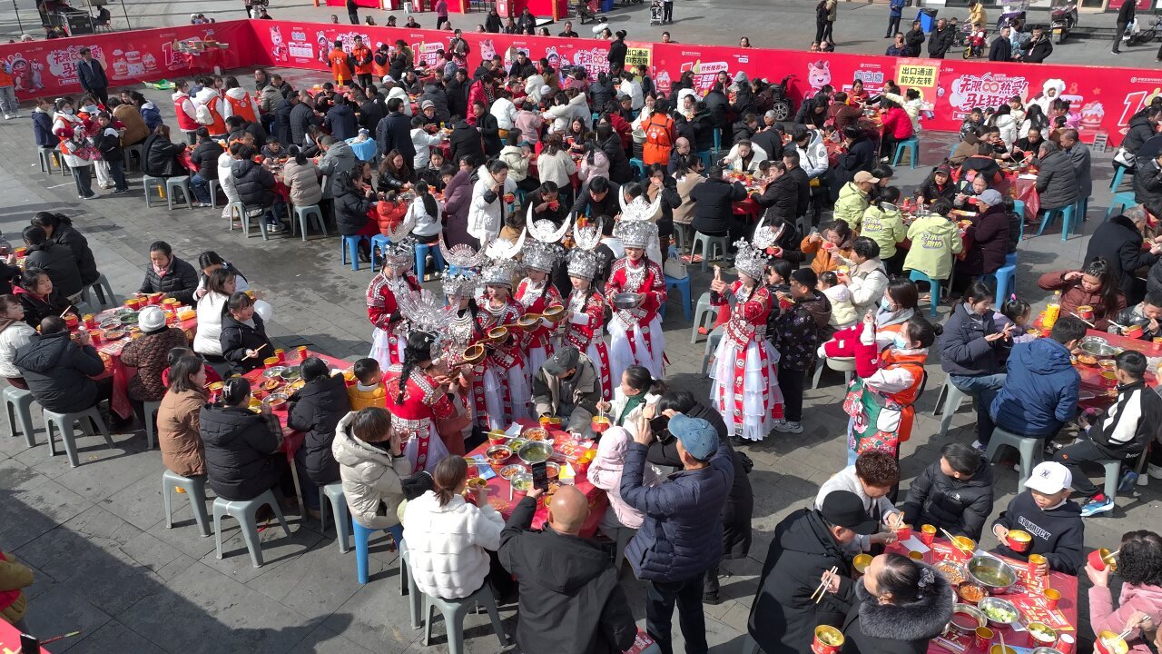 岁末暖冬,年味渐浓。1月31日,一场热闹非凡的千人刨锅宴在贵州省遵义市习水县时代广场温情开席,千余名市民欢聚一堂,围着热气腾腾的刨汤,共品乡土美味、共话团圆期许、共感浓浓年味,在欢声笑语中开启了一场兼具民俗气息与温情暖意的年终盛宴。