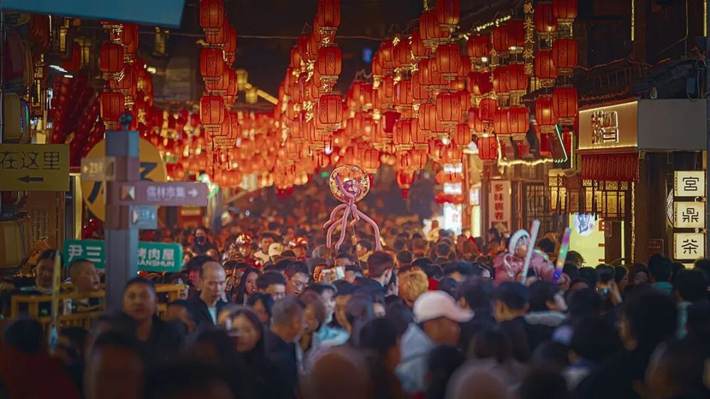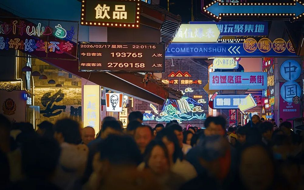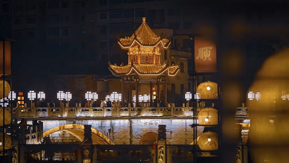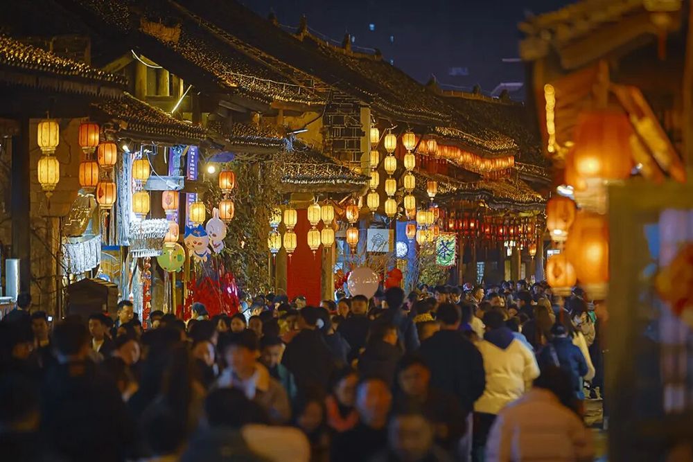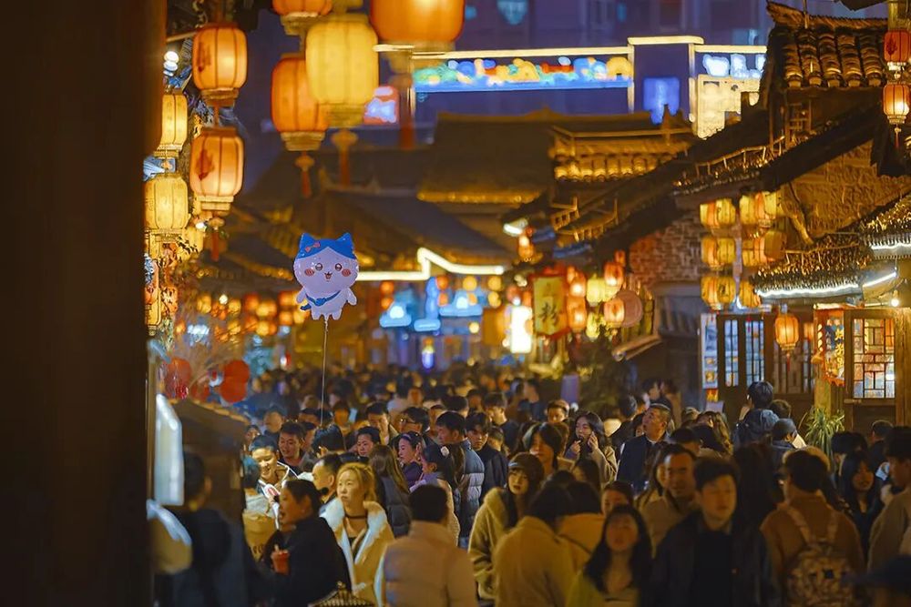 马年春节长假,贵州安顺古城历史文化街区成了来安游客们争相打卡的热门景点,白天人流如织,热闹非凡;而夜色中的安顺古城则是一片色彩斑斓,仿佛一个如梦如幻、流光溢彩的世界。加之近期安顺市推出的一系列精心策划的春节文旅活动,更是吸引了众多市民和游客前往感受新年味儿。(来源:安顺市融媒体中心)