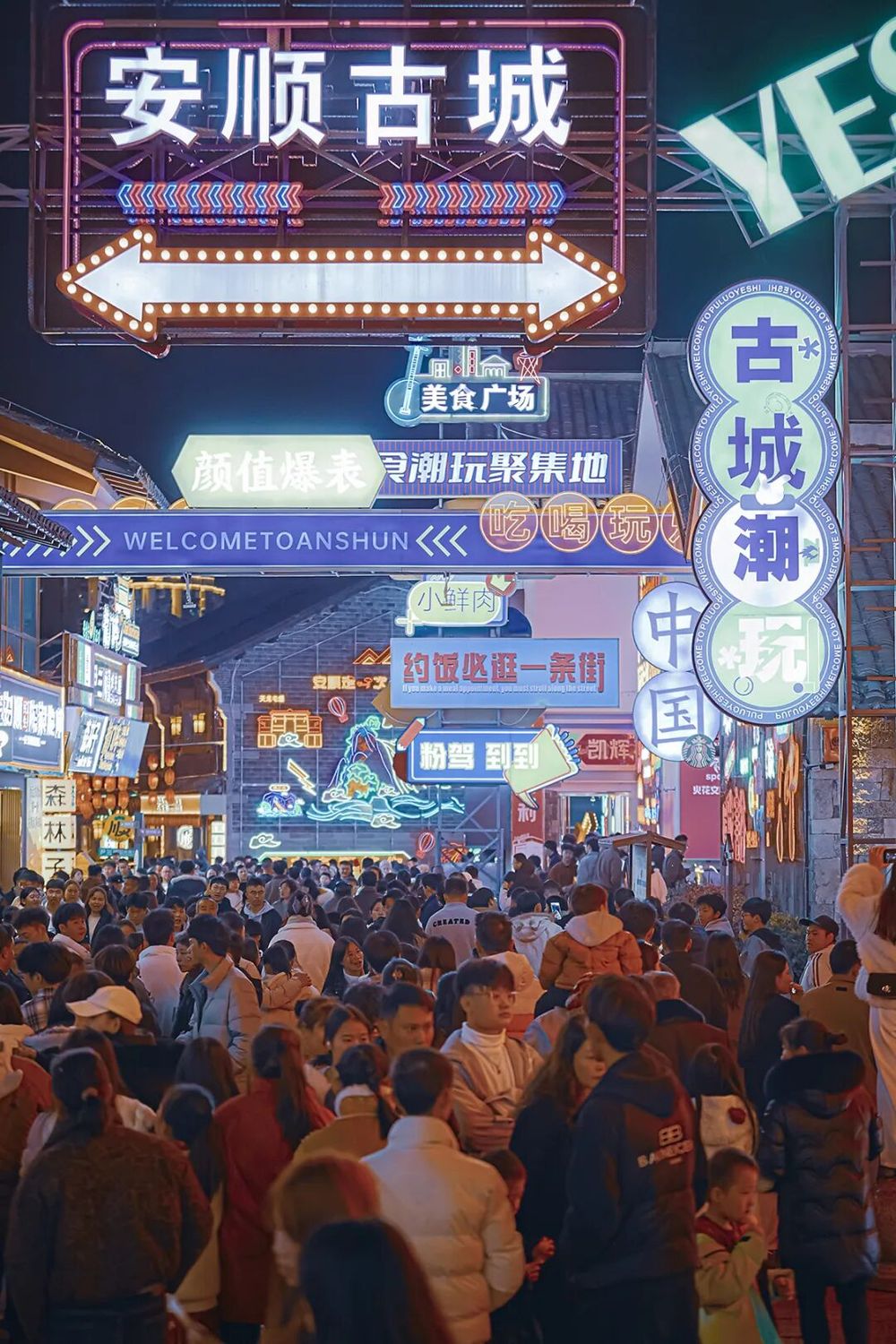 安顺古城人头攒动(薛峰 摄)