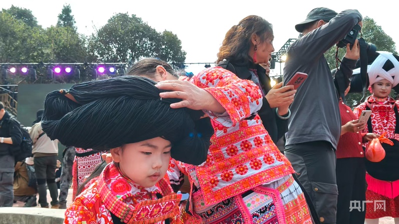 苗族母亲为女儿梳妆(央广网发 范碧琴 摄)