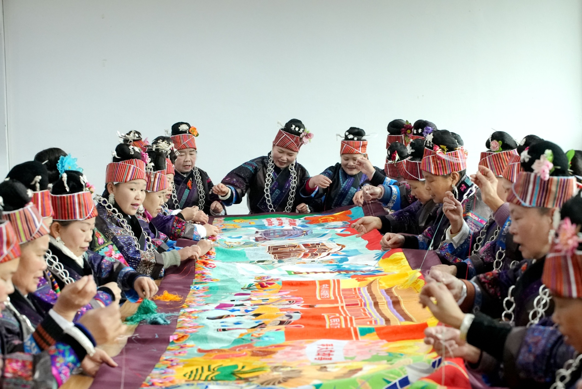 百名绣娘合力绣制《锦绣台江》长卷(龙军 摄)