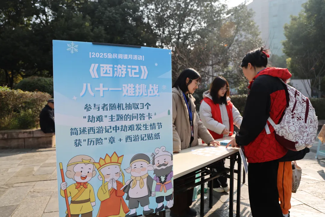 本次活动突破了“静坐阅读”的传统形式,将现场巧妙构建成一个宏大的、可步入的“文学宇宙”。参与者手持“探索手册”,穿梭于五大名著打卡点之间:在《三体》站破解“黑暗森林”拼图,感受思维的激荡;在《小王子》站为心中的“玫瑰”写下温情寄语,完成情感的联结;在《解忧杂货店》站投递烦恼或传递善意,体验温暖的共鸣;在《西游记》站智取“八十一难”问答,重温经典的智慧。