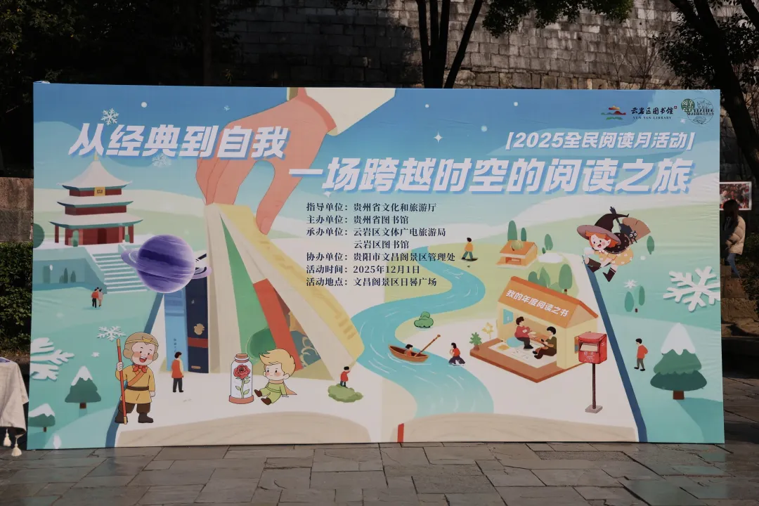 2025年“阅见多彩贵州·书香浸润人心”贵州省读书月于12月1日正式启动。当天,由贵州省图书馆主办,云岩区文体广电旅游局、云岩区图书馆承办的沉浸式阅读盛宴——“从经典到自我:一场跨越时空的阅读之旅”2025贵州省读书月主题活动启动仪式云岩分会场在文昌阁举办,众多市民读者化身“时空旅人”,在冬日的暖阳下完成了一次从文学经典探索到个人内心书写的完整旅程,为2025年的阅读生活留下了浓墨重彩的一笔。