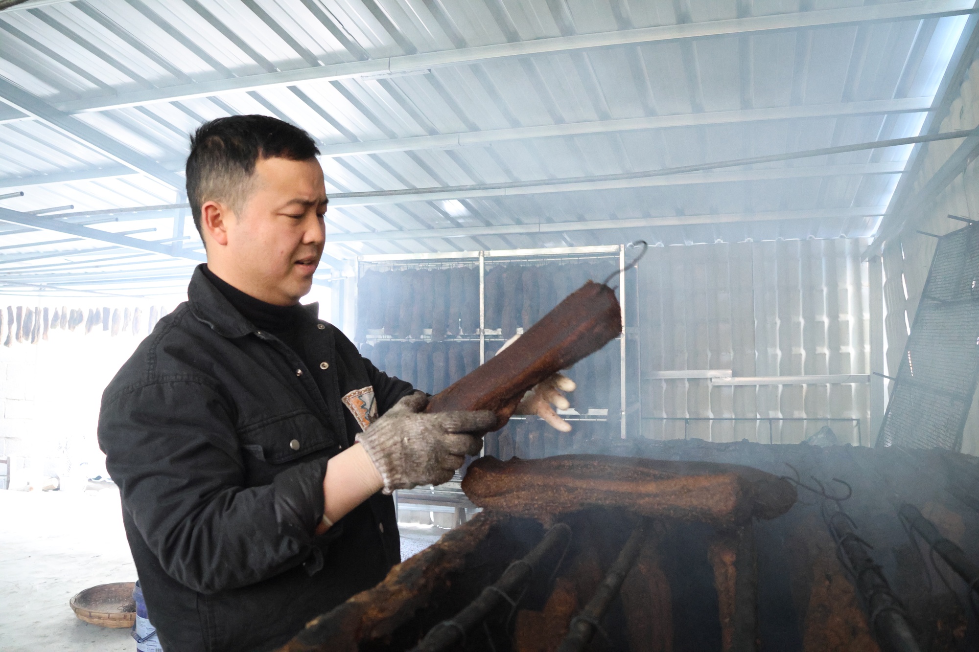 腊肉熏烤现场(独山县融媒体中心供图)