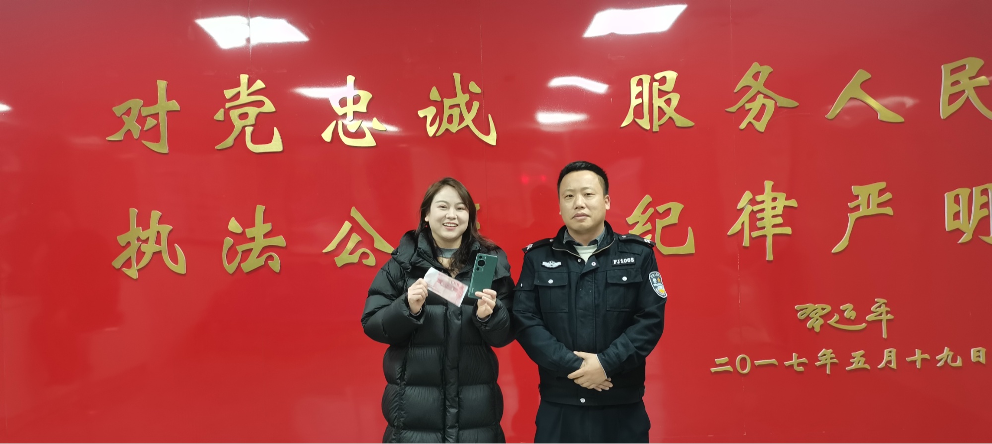 伍女士与特巡警队员合照(岑巩县公安局供图)