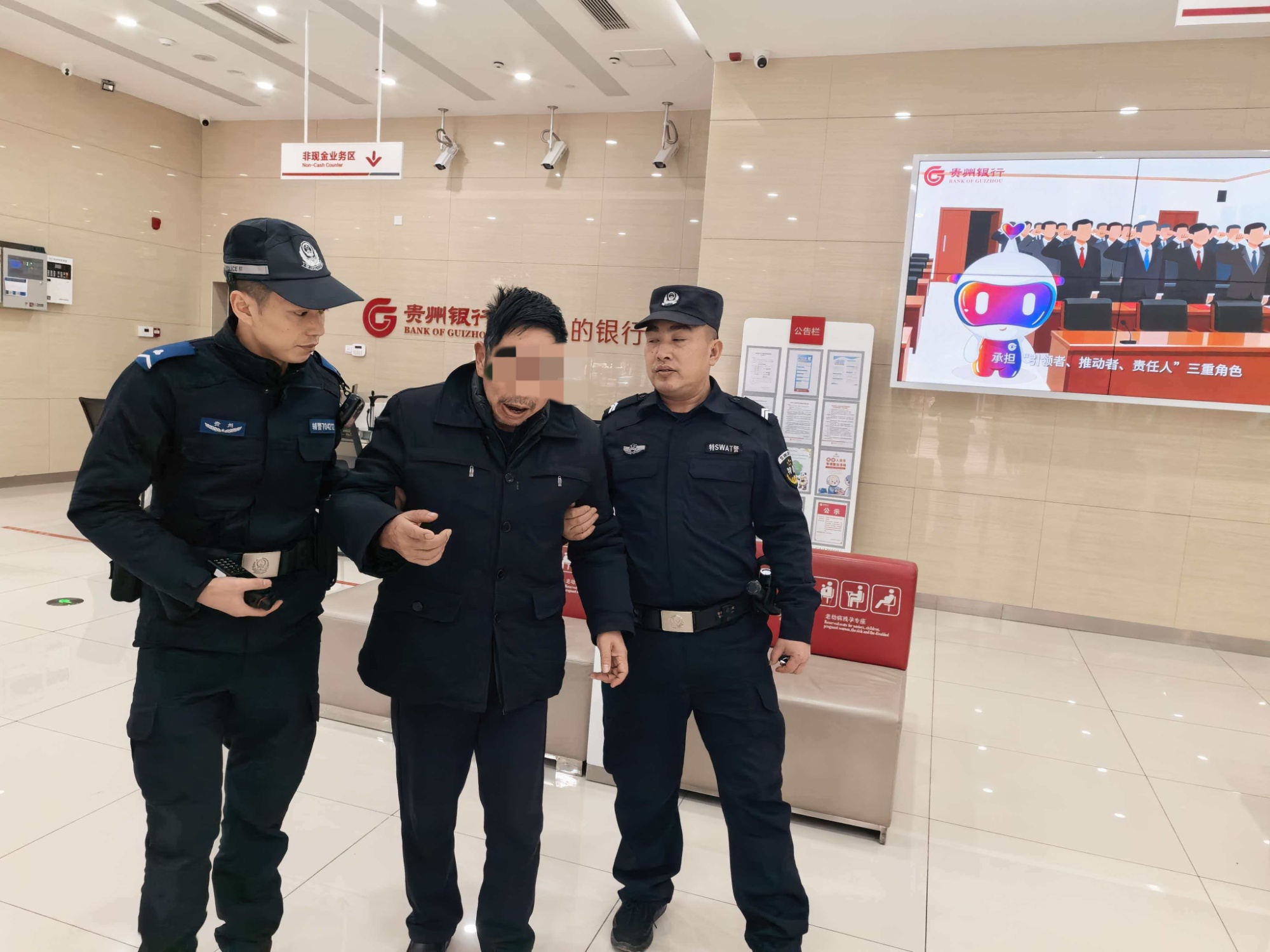特巡警队员搀扶着老人(岑巩县公安局供图)