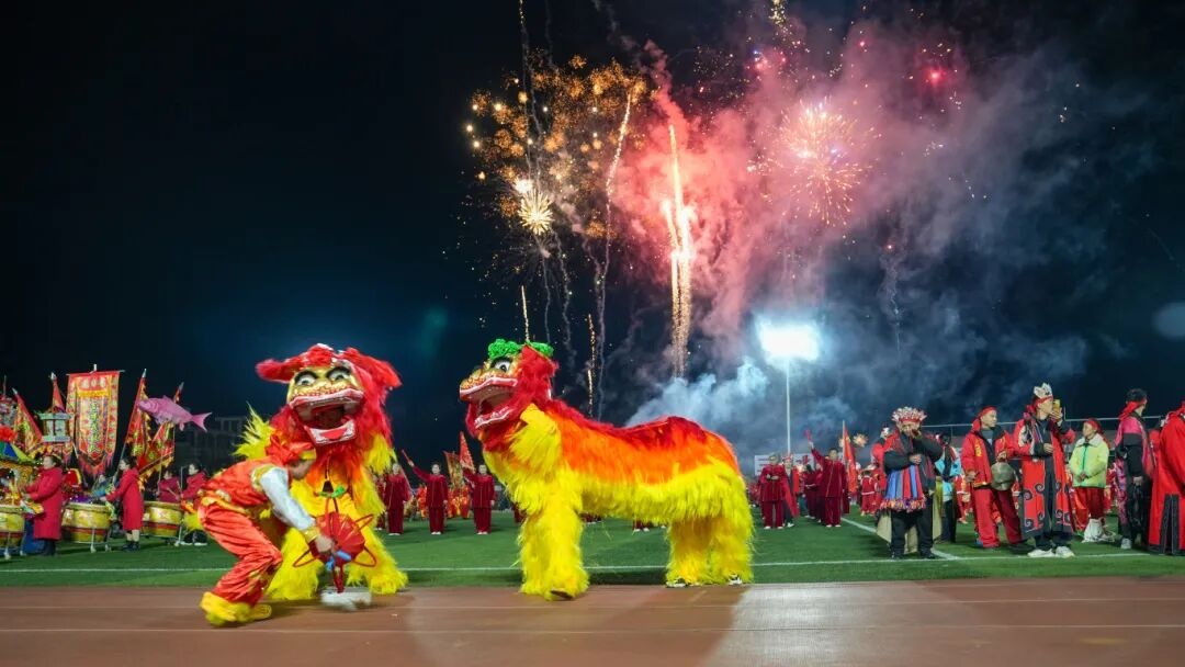3月2日,贵州省黔东南苗族侗族自治州岑巩县舞水街道锣鼓喧天、龙腾狮跃,2026年“传承思州文化 欢度新春佳节”非遗巡游活动热闹举行。非遗展演、民俗巡游精彩纷呈,现场人头攒动、喜气洋洋,处处洋溢着欢乐祥和的节日氛围。