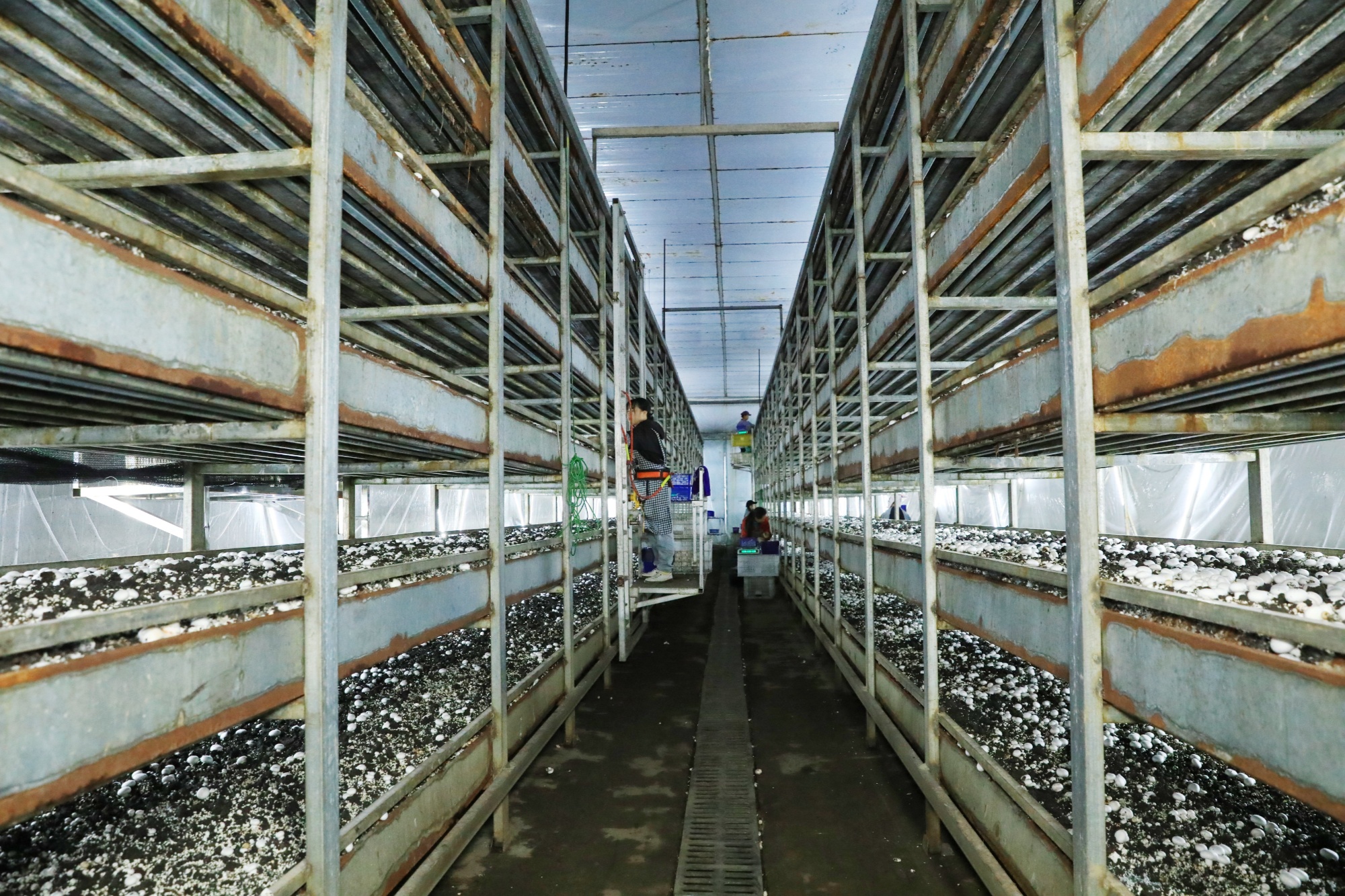眼下正值双孢菇采收旺季,走进种植基地,工人们正熟练地忙着采收、分拣、打包,一派繁忙景象。车间采用六层立体菌床种植,大幅提升土地利用率,既拓展了种植空间,更助推产量稳步增长;同时,自动化环境控制系统精准调控温度、湿度、二氧化碳浓度等关键参数,让菇房始终保持最优生长环境,长出的双孢菇菌盖饱满、色泽莹白,品质上乘。
