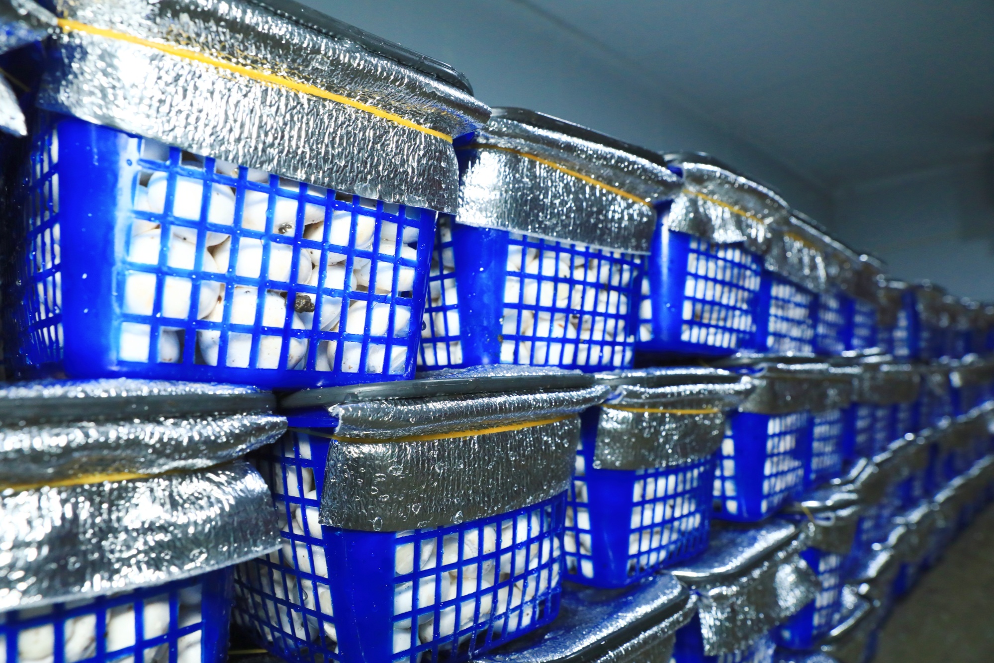 恒温菇房旁,配套冷库已投入使用。工人们将分拣好的双孢菇迅速送入预冷库锁鲜,再根据订单通过冷链物流发往各地。全程低温环境加持,让双孢菇从离棚到上桌,品质与风味都得到最大程度保留,真正实现消费者的“鲜菇自由”。