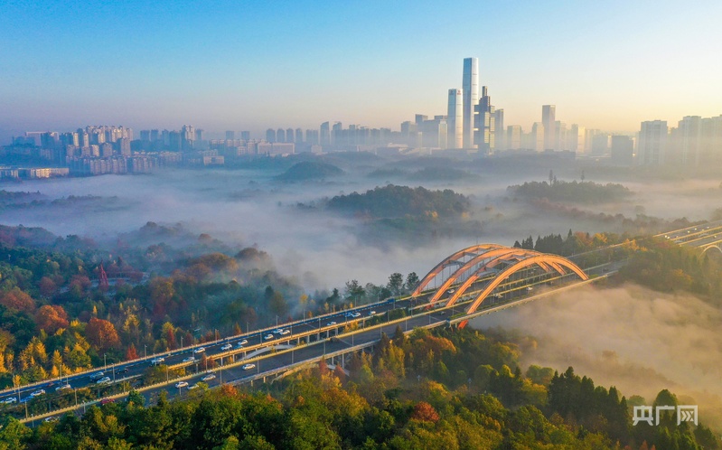 贵阳观山湖公园晨雾缭绕,宛若仙境(央广网发 乔啟明 摄)