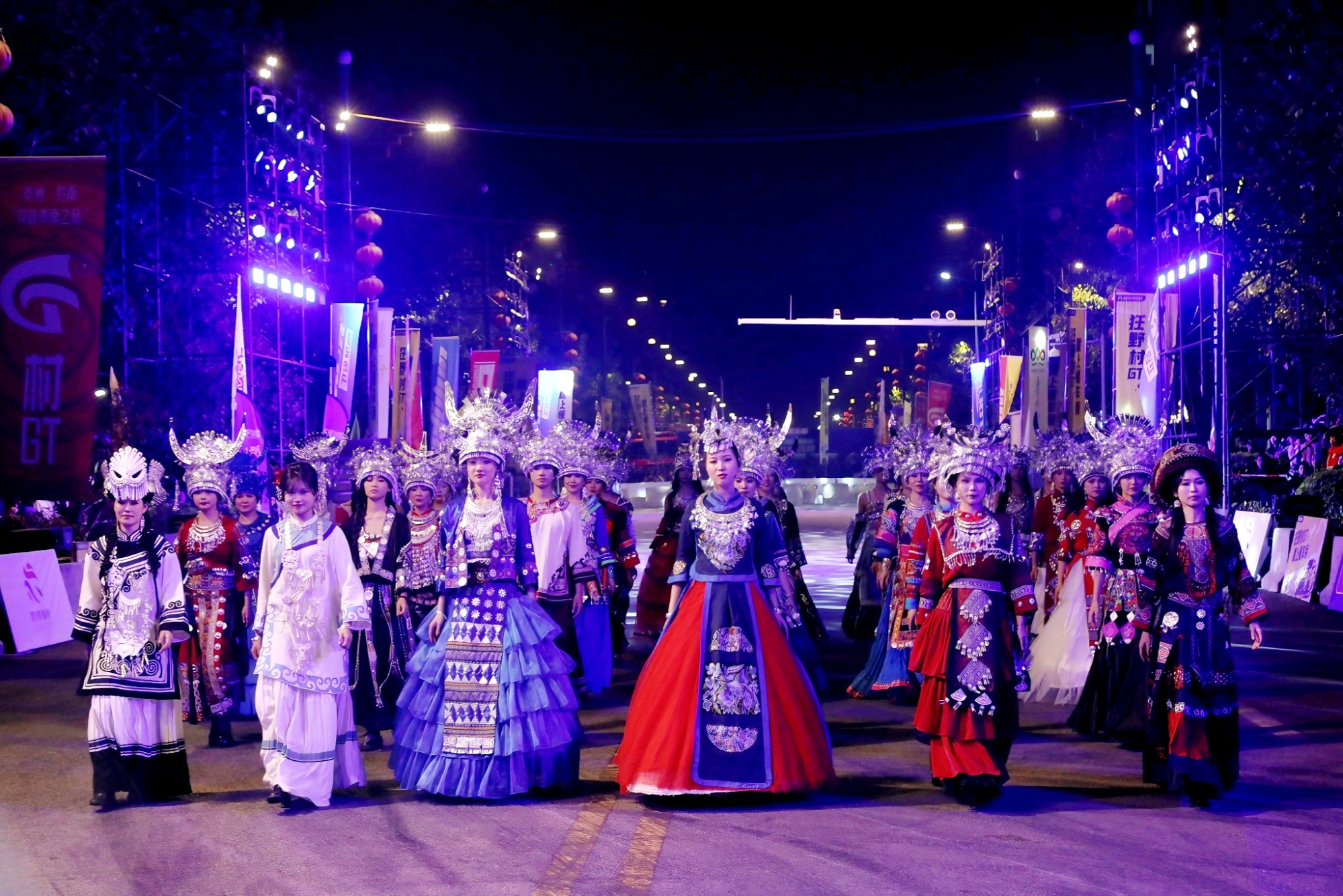 最为抢眼的是“村模”们的T台秀。身着苗族、水族等少数民族服饰的“村模”们便踏着节拍登场,举手投足间尽显乡土自信与民族风情,华服上的银饰随着步伐叮当作响,让“民族高定”绽放独特魅力。