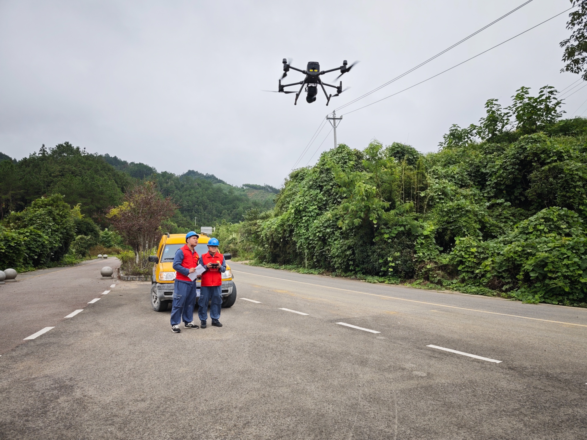 南方电网贵州都匀供电局工作人员使用无人机巡检景区周边线路(王文涛 摄)