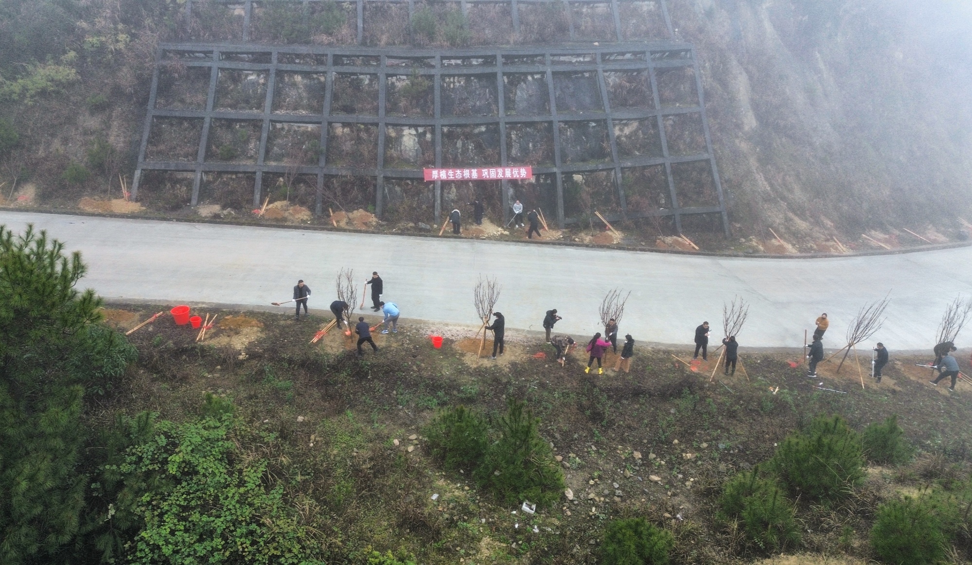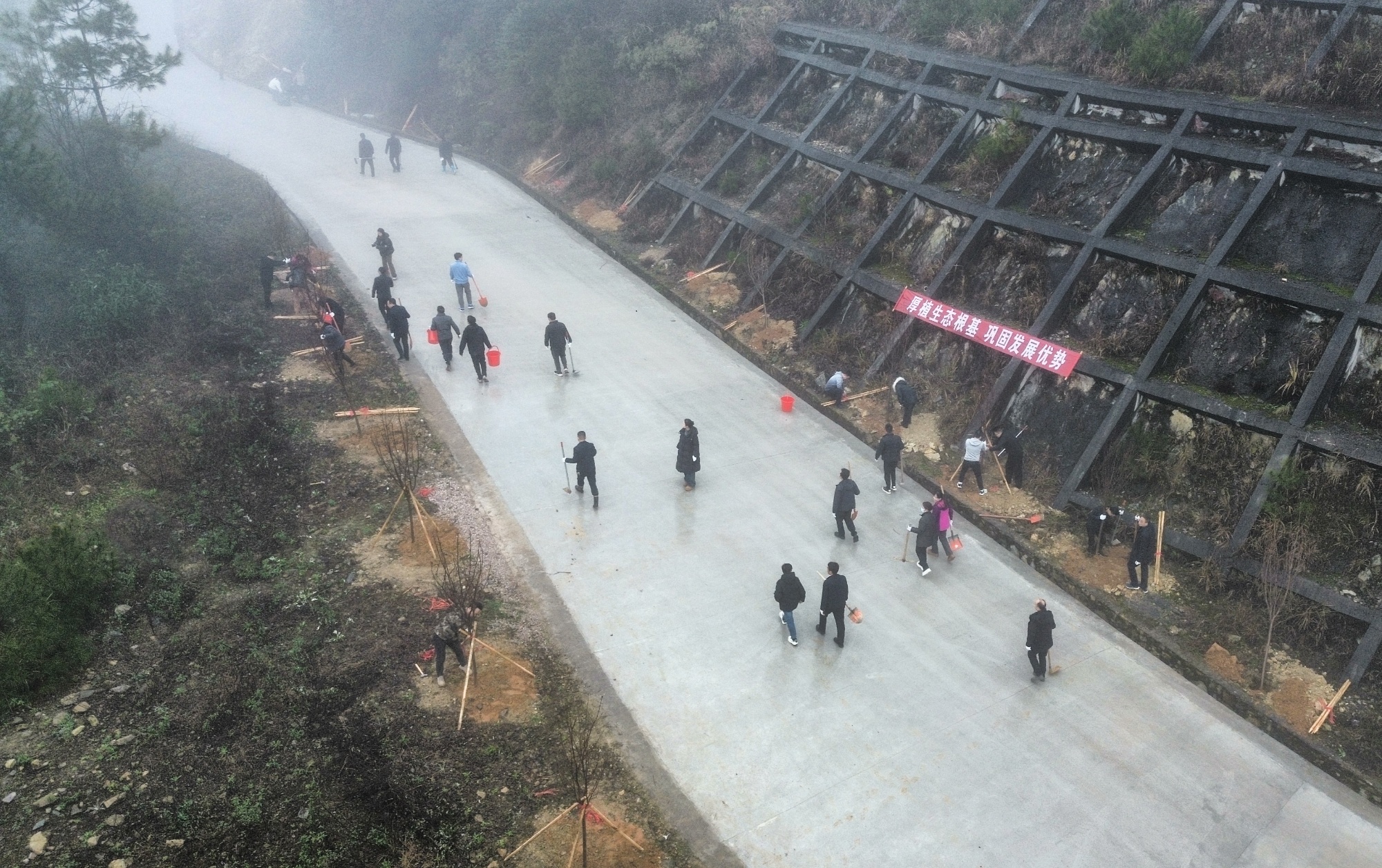 在丹寨县龙泉镇龙泉山大登高义务植树点,来自全县各部门的160余名干部职工挥锄挖土、扶苗填坑,分工协作、配合默契,现场一派繁忙景象。经过一番辛勤劳作,一株株新苗在龙泉山公路两侧迎风挺立,为初春的丹寨增添了勃勃生机。