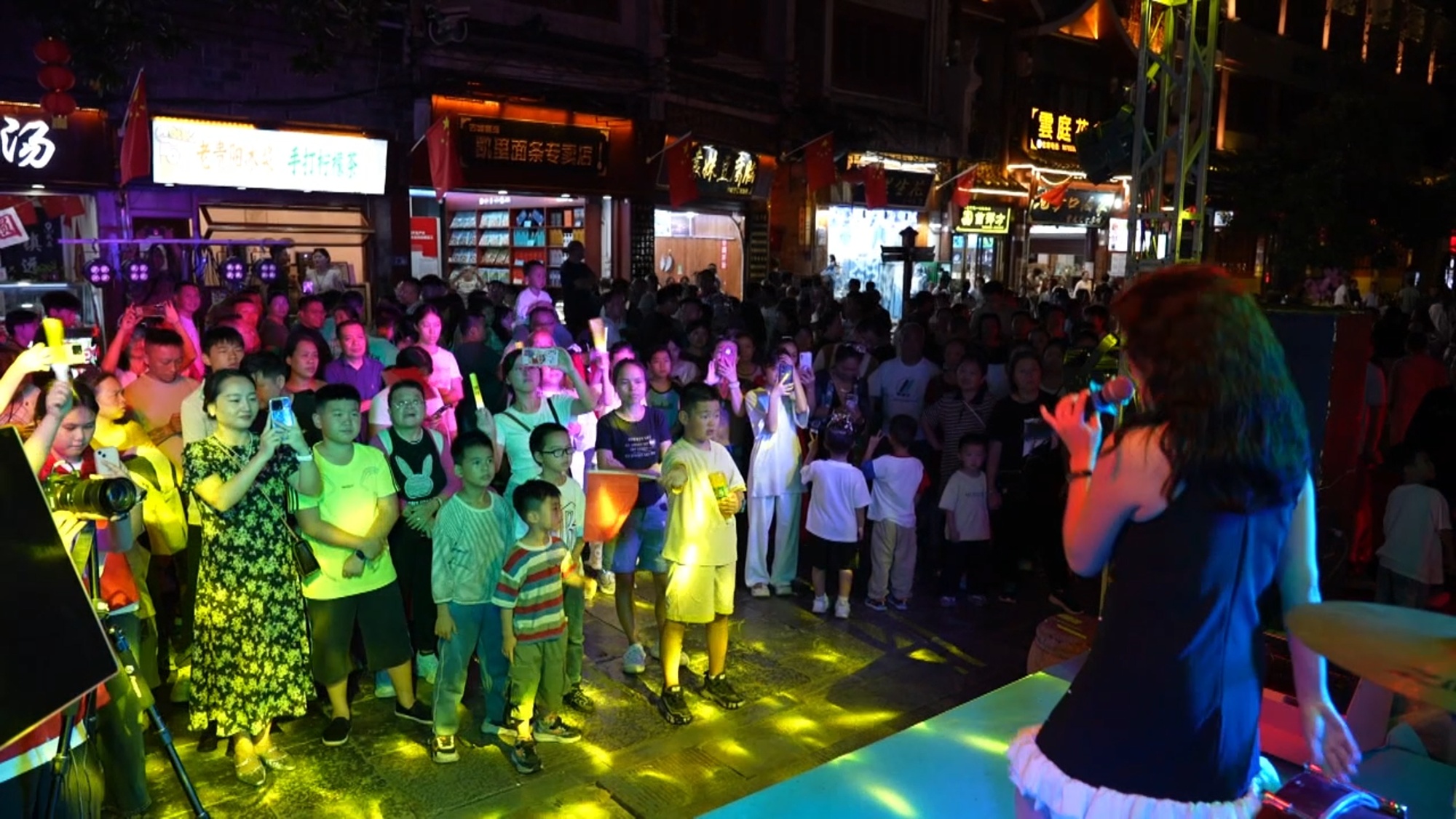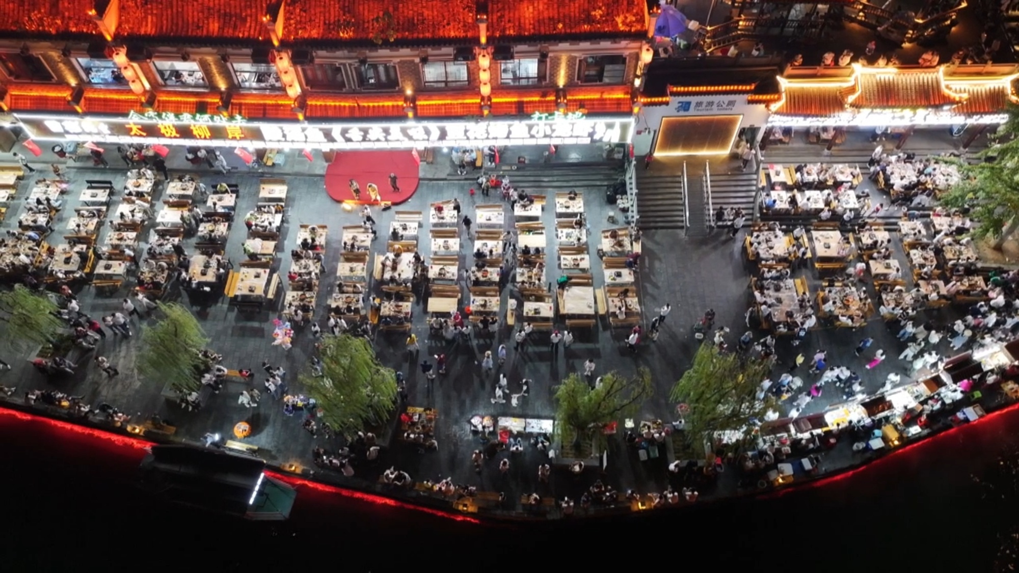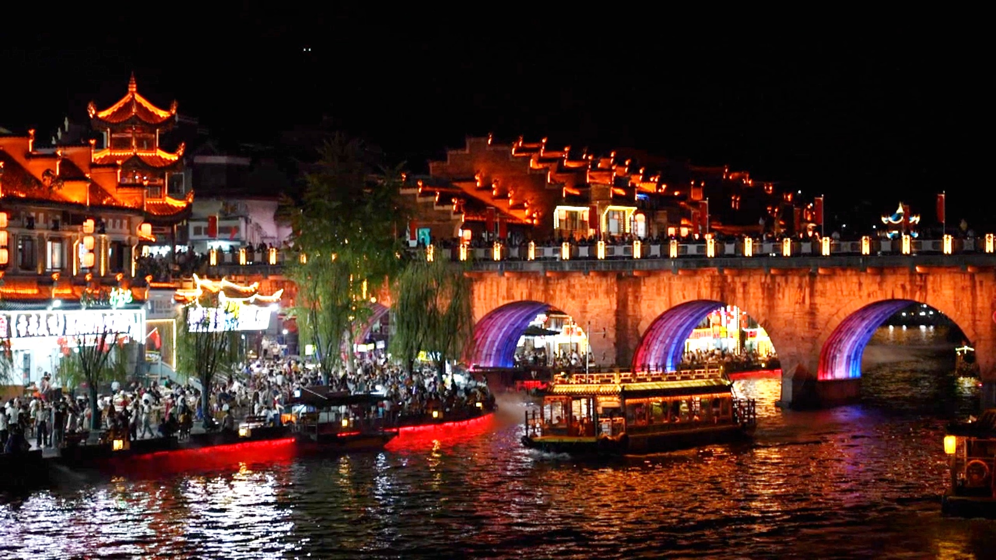 夜幕降临后,古城“夜经济”活力迸发,水上游项目前游客排起长队,夜市与文化展演深度融合,形成吃、住、游、购、娱一体化消费场景。路边演唱会、非遗展演等特色活动应接不暇,让游客在古城漫游中感受地域风情。