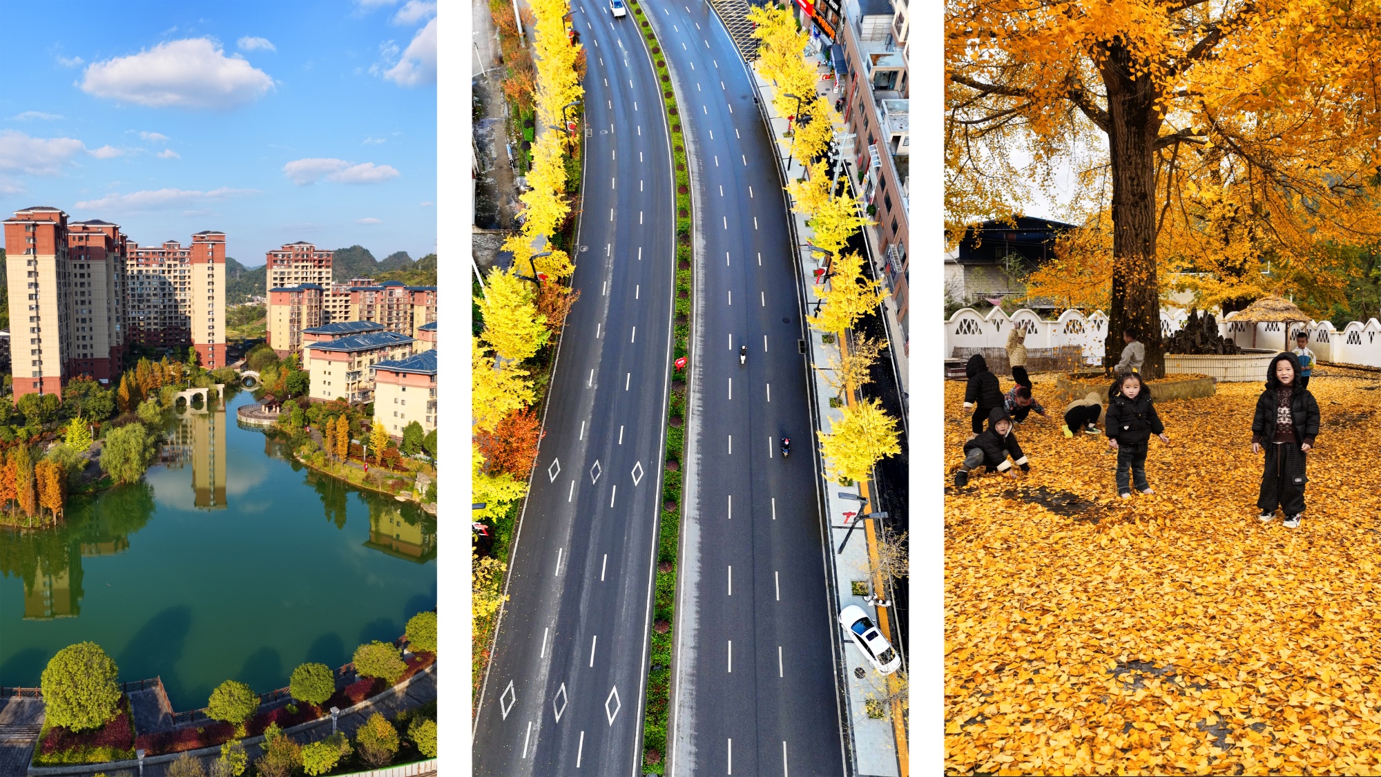 孩子们在银杏树下玩耍(麻江县融媒体中心供图)