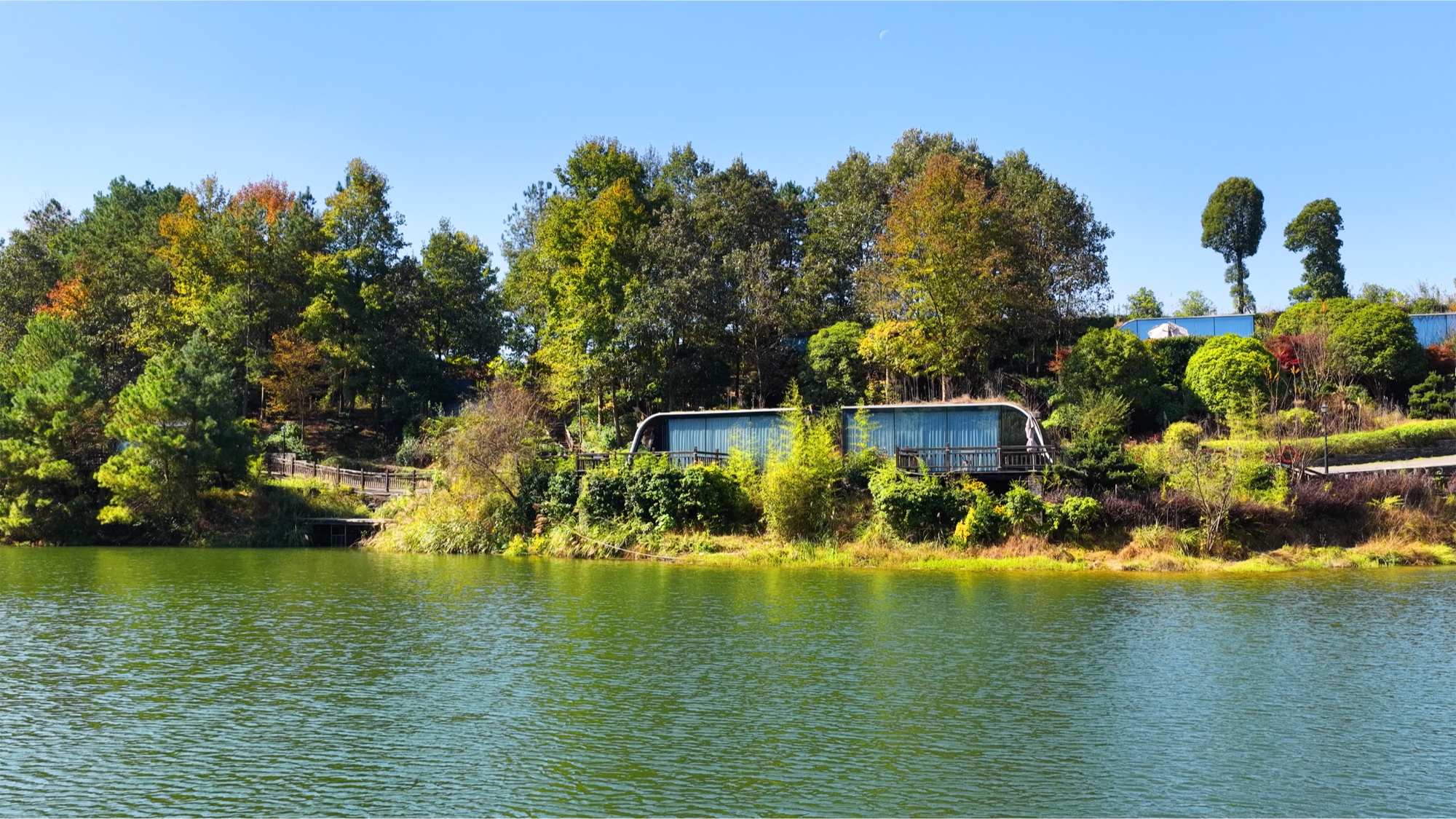 初冬的蓝梦谷,蓝莓叶燃烧成一片流淌的火焰,红得炽烈,红得磅礴。地球仓酒店畔,溪水如碧色绸带缠绕山间,清澈得能捞出云影天光。这是大自然打翻的调色盘——红叶是大地跃动的脉搏,碧水是山谷澄澈的眼睛,共同奏响色彩的交响诗。