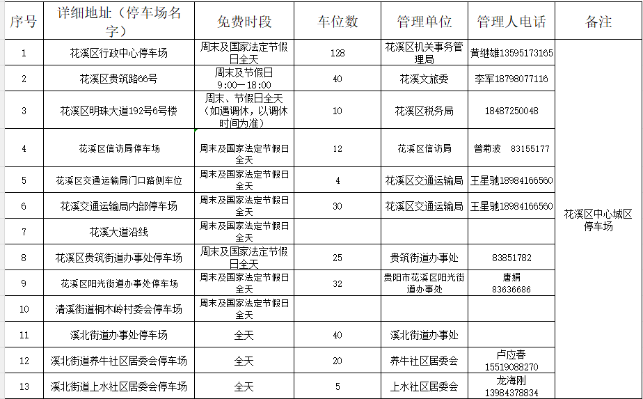 花溪城区周边免费停车场列表(花溪区融媒体中心供图)