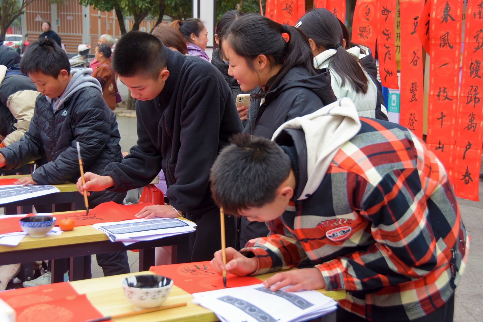 城关镇组织学生为当地市民免费书写新春祝福(施秉县融媒体中心供图)