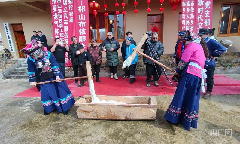 祁山村村民正在打糍粑(央广网发 范碧琴 摄)