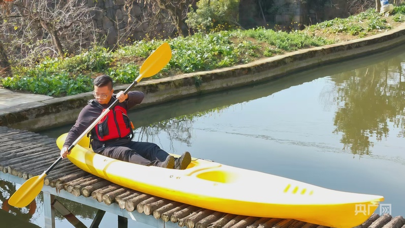 绿山探游工作室工作人员演示皮划艇的操作方法(央广网发 范碧琴 摄)