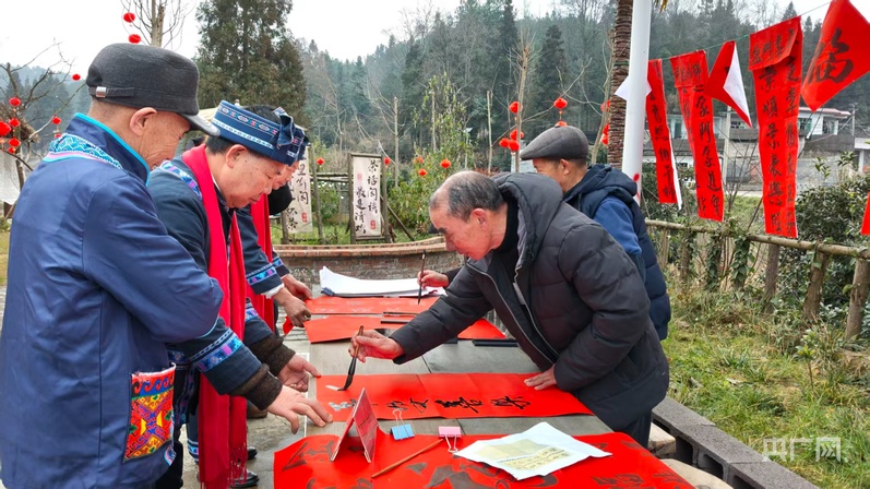 祁山村村民正在写春联(央广网发 范碧琴 摄)