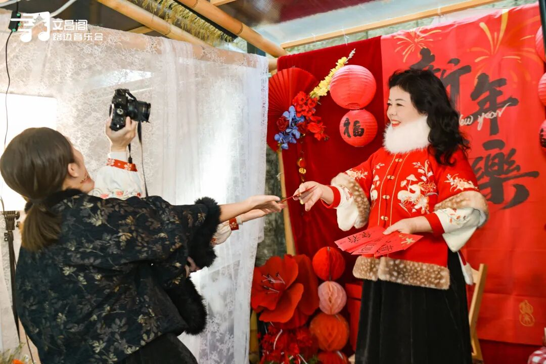 传统文化地标文昌阁同样热闹非凡,知行雅集系列活动轮番上演,非遗市集、古风巡游、祈福活动等精彩纷呈。碑廊之下,冷香都剪纸、龙角棘、龙氏吹糖人等8大非遗项目齐聚,剪纸镂空、内画绝技、吹糖人互动等现场展演引人入胜。古风巡游与NPC互动、瓮城游艺竞技场、射礼、投壶、蹴鞠等趣味项目吸引众多游客参与。