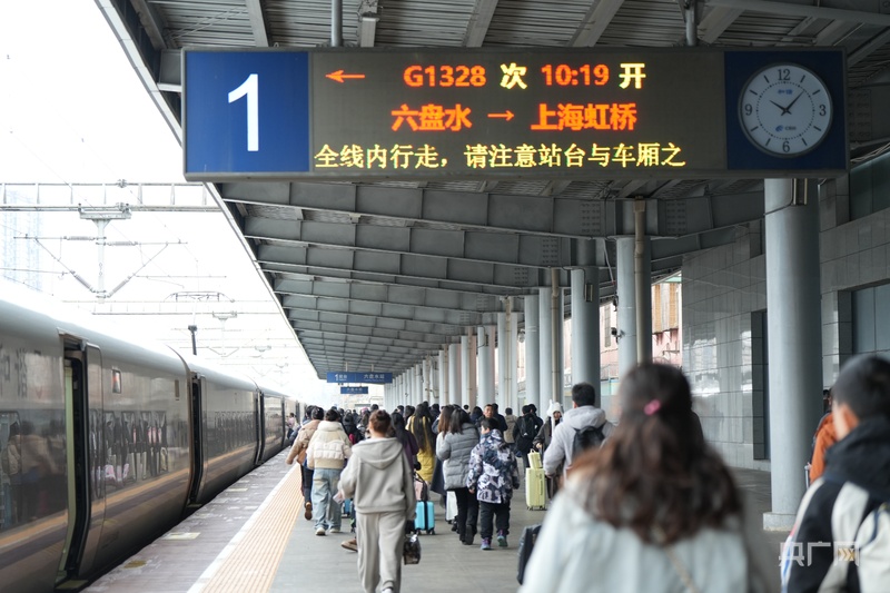 春运首日,六盘水站站台人头攒动(央广网发 中国铁路成都局集团贵阳车站供图)