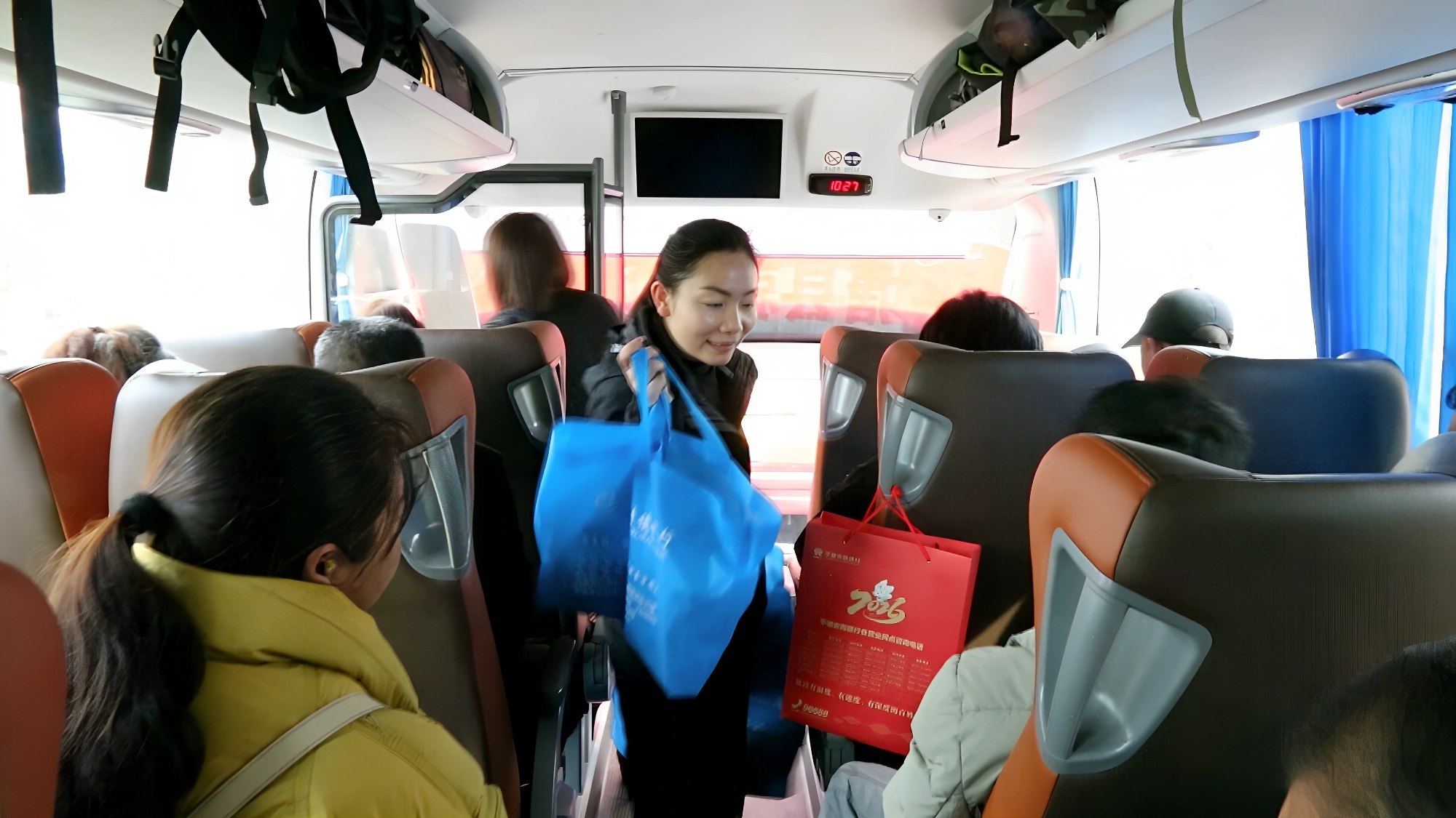 “现在正值返程高峰,车票非常难买,政府现在组织我们大家免费乘车,还直接送到厂区门口,既方便又贴心!”返岗农民工张正磊高兴地说道。