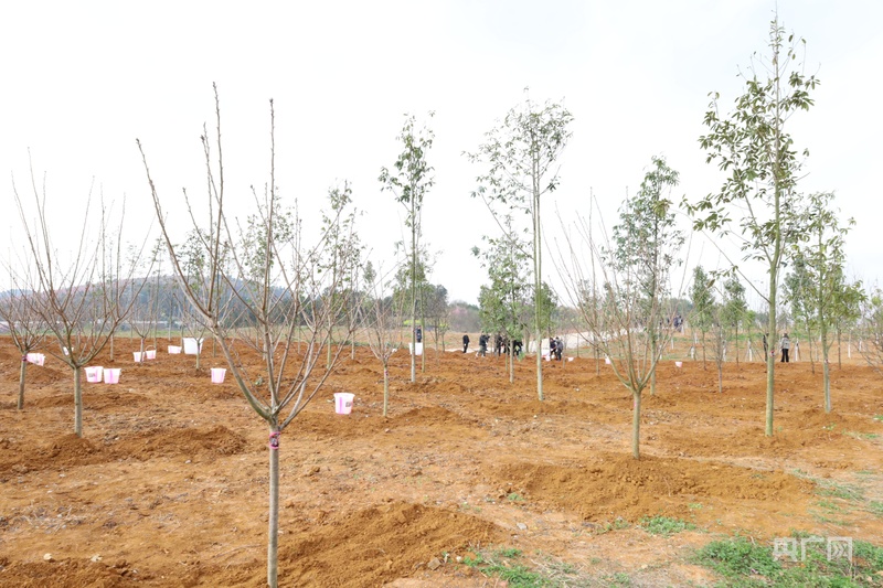 栽种好的树苗迎风挺立(央广网发 范碧琴 摄)