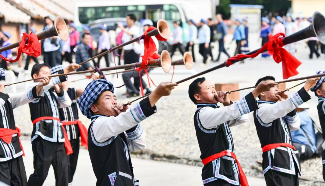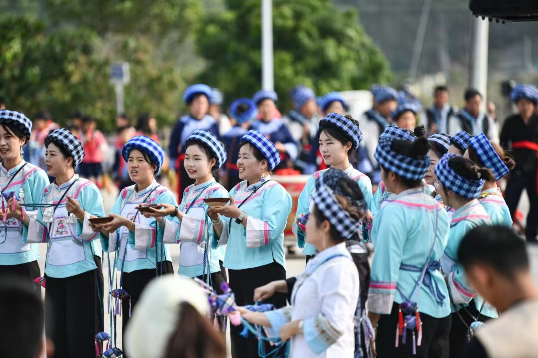 一大早,村民们在寨门口开展迎宾仪式,用一首首敬酒歌喜迎八方宾客,将“三月三”活动拉开序幕。