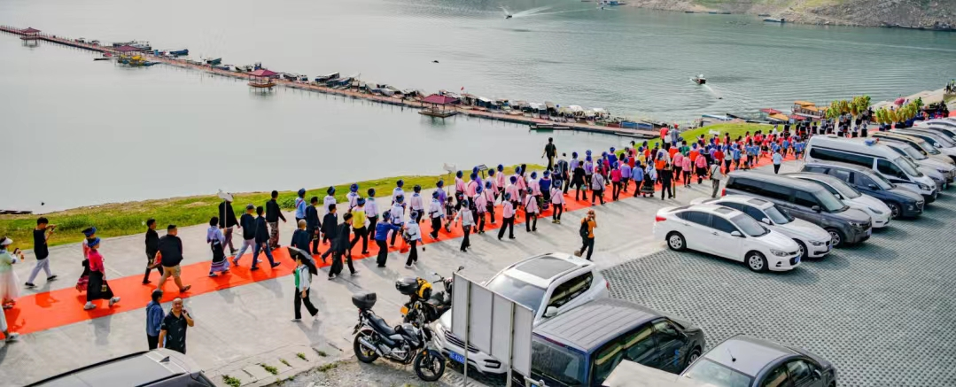早上9时许,随着海螺、鼓号的响起,舞龙队、唢呐队、各村祈福队伍浩浩荡荡走向码头,“山水古韵”祭水祈福大典随即开始。群众用独特的方式感恩自然、感恩祖先、感恩社会,祈求村寨平安,风调雨顺,五谷丰登,人畜兴旺,社会和谐。