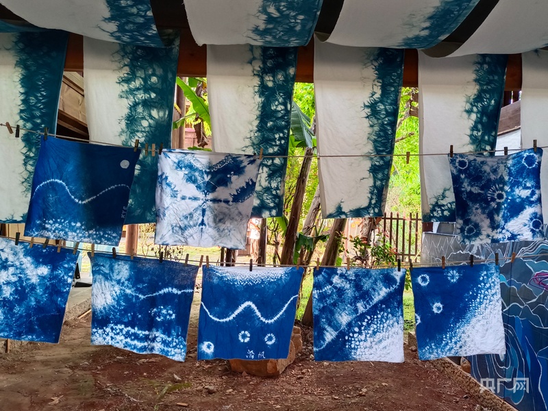 刚刚完成的扎染作品(央广网发 刘丽 摄)