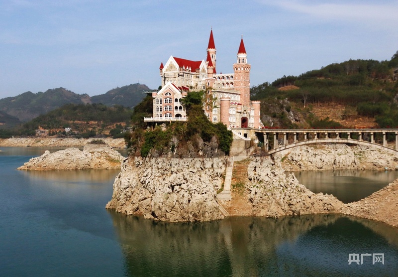 当天最后一站,采风团来到了矗立于万峰湖的吉隆堡。这座哥特式城堡倒映在碧波之中,宛如童话故事里的梦幻场景突然跃入现实。城堡内部别有洞天,彩绘玻璃透出斑斓的光影,复古吊灯在穹顶下熠熠生辉,站在拱形落地窗前,既能欣赏到精致的欧式内饰,又能将万峰湖的壮阔尽收眼底,令人啧啧称奇。