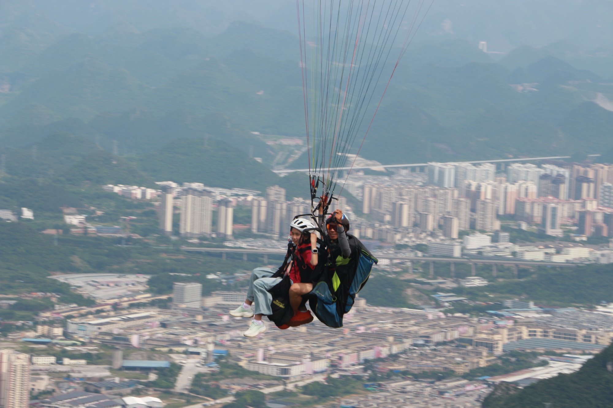 教练员带领游客体验滑翔伞(黔西南州委宣传部供图)