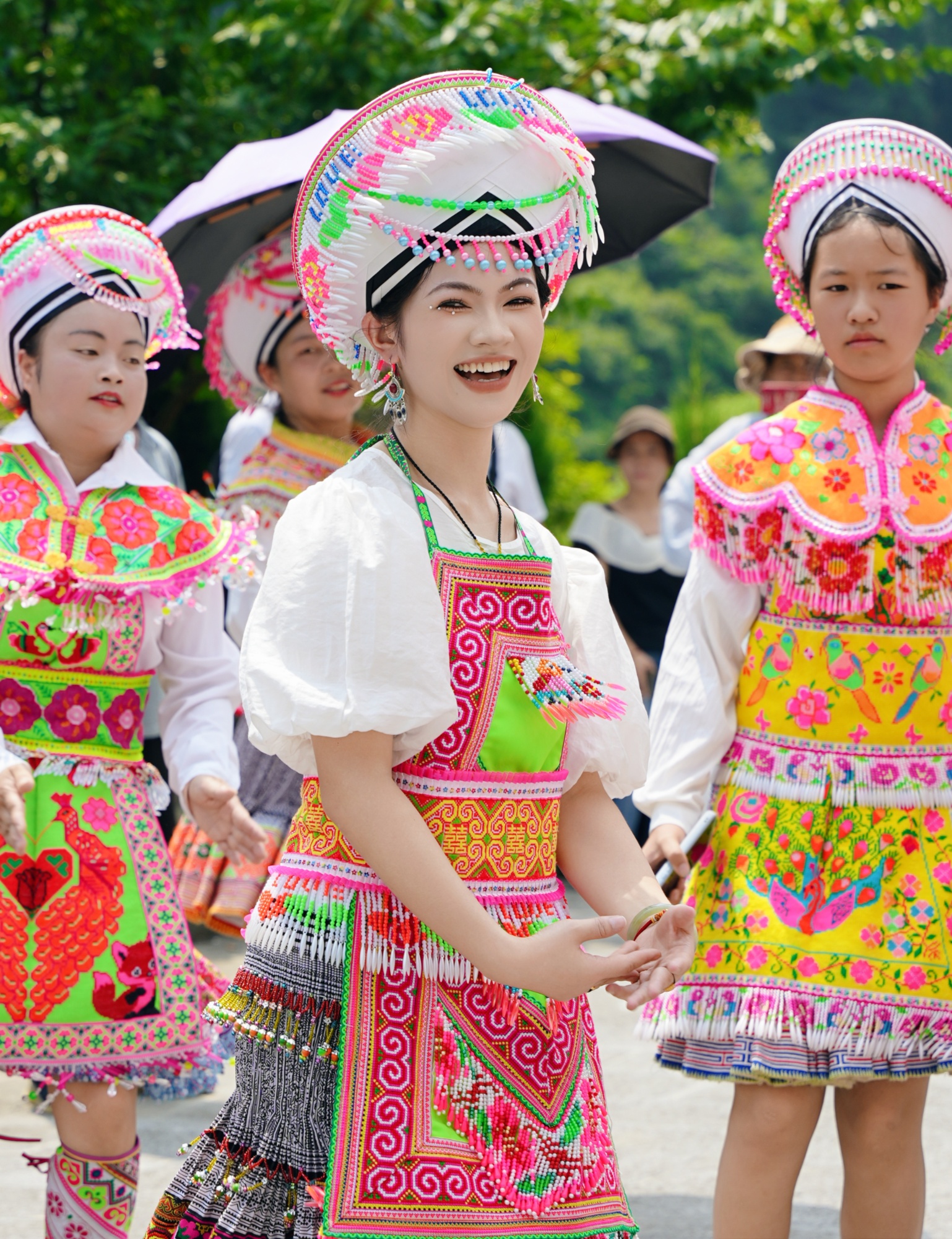 竞技比赛燃激情,非遗展演显魅力。“观村戏”乡村大舞台文艺展同样人气爆棚,活动现场,民族服装走秀、传统歌舞表演等非遗项目轮番登场,一针一线的刺绣纹样、一唱一和的古老歌谣,都展现着各民族文化的独特韵味,吸引了众多游客驻足观赏。