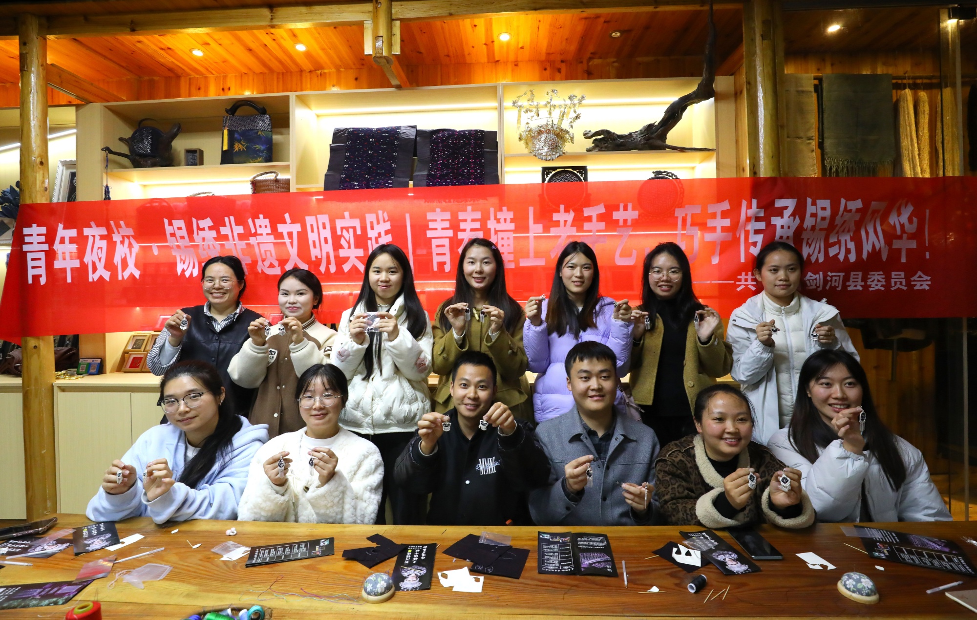 为推动非遗与青年力量双向奔赴、焕发新生,近日,共青团剑河县委员会举办了一堂“青年夜校·锡绣非遗”的文明实践课,让锡绣技艺在沉浸式体验中走进青年心田。