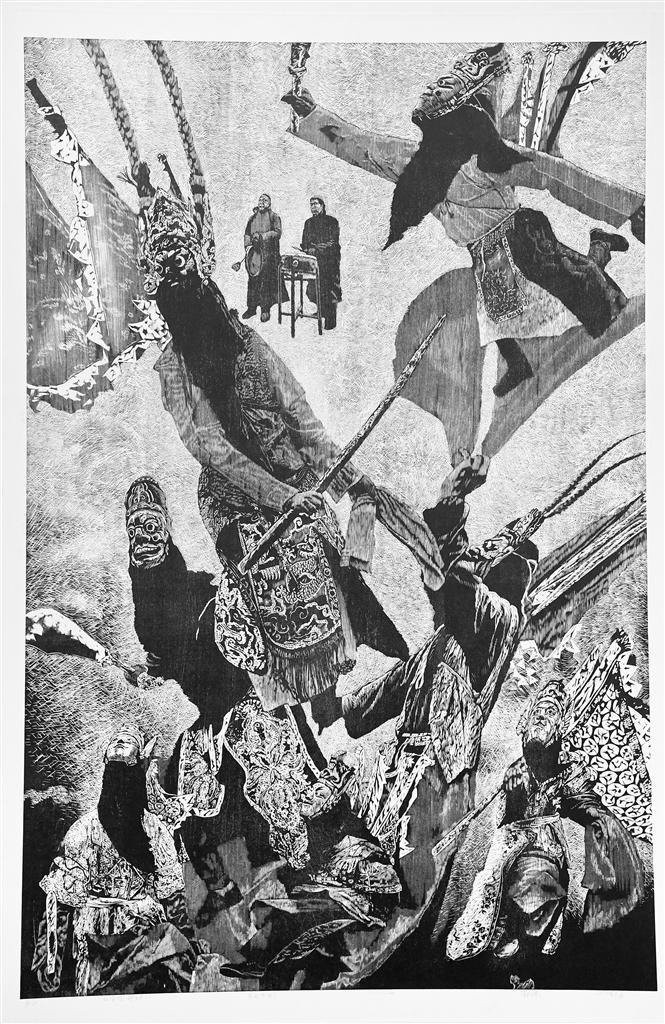 版画作品:《屯堡傩音·地戏春秋》。作者:朱世伟