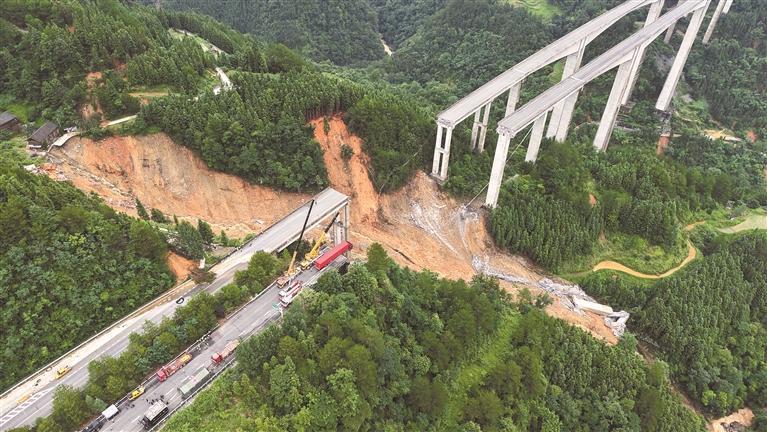 原标题:“明白人”敲着钢盆大喊:赶紧出门! 山体滑坡导致厦蓉高速猴子河特大桥引桥垮塌,附近村民及时转移无一伤亡